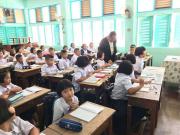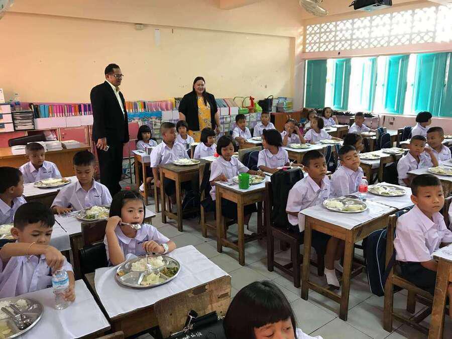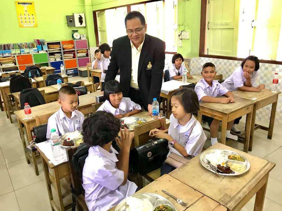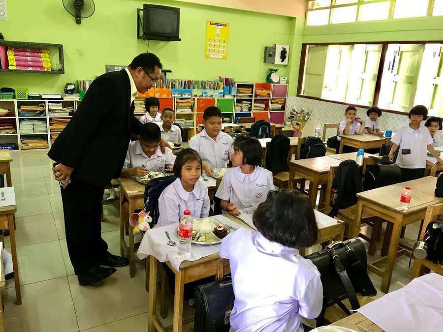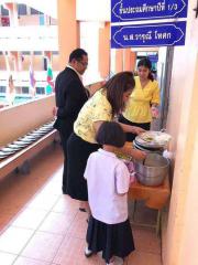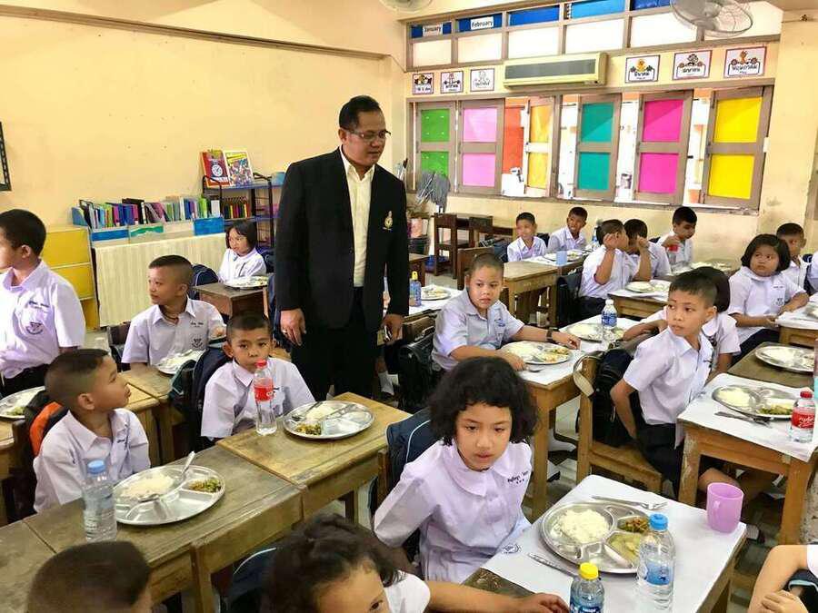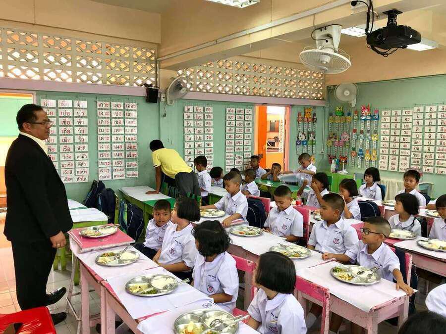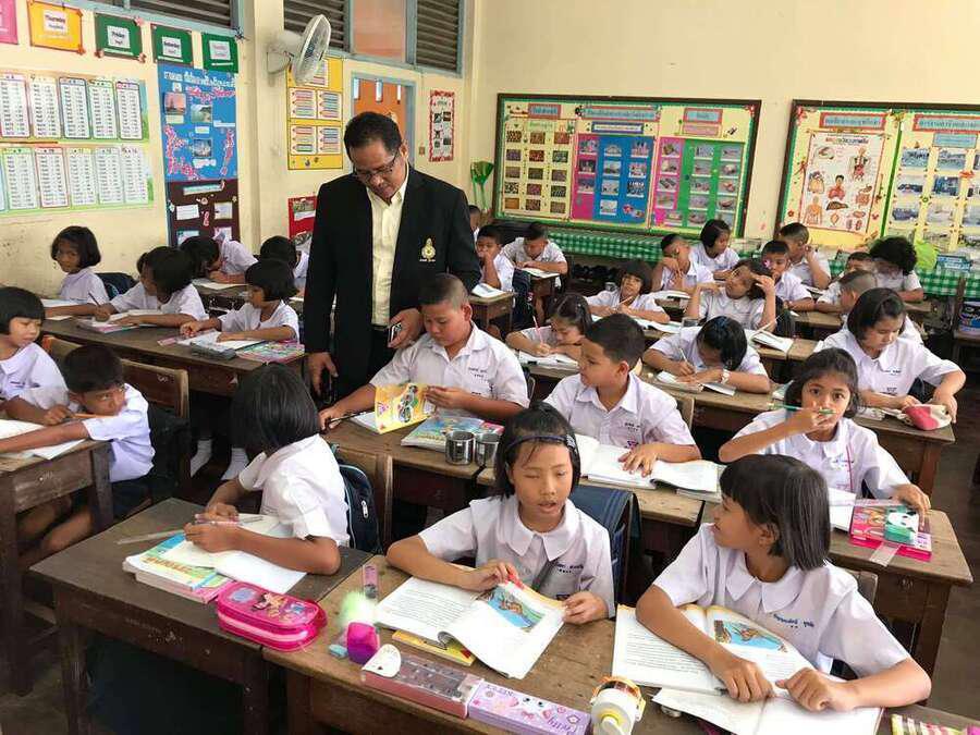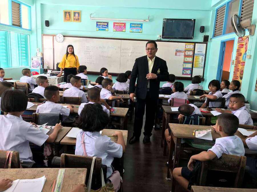 นายศักดิ์สิทธิ์ แร่ทอง ผู้อำนวยการโรงเรียนอนุบาลชุมพร เดินตรวจเยี่ยมนักเรียน ชั้น ป.1 ป.3 และ ป.4