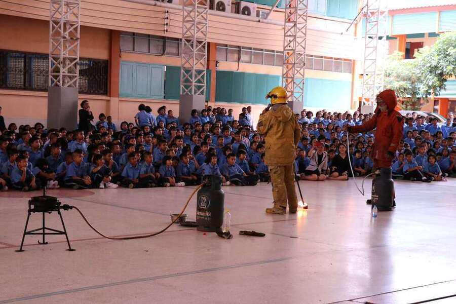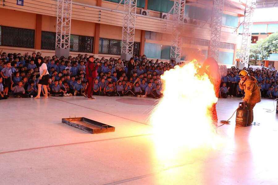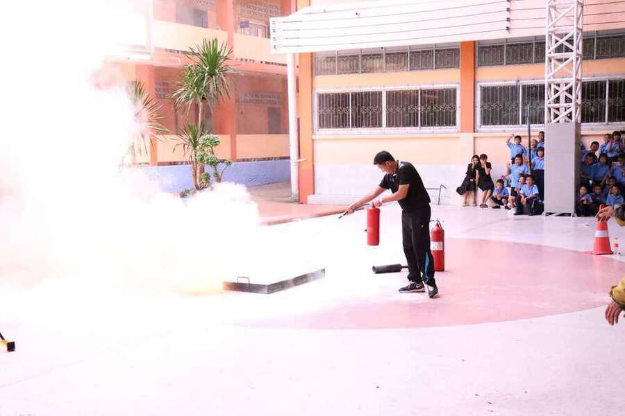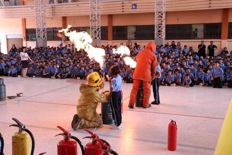 การฝึกอบรมกรณีเกิดไฟไหม้อาคารสถานที่