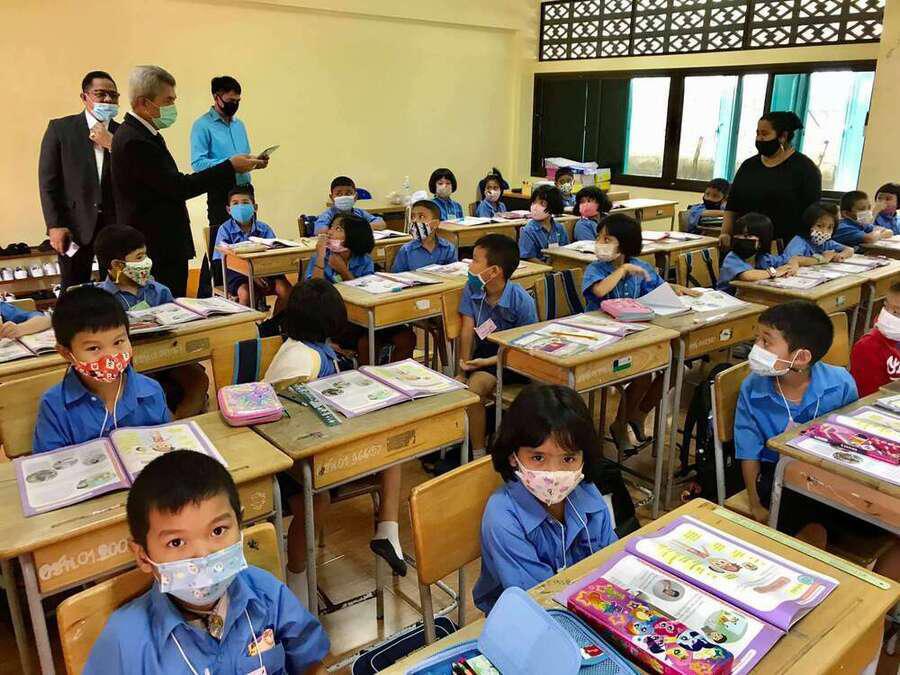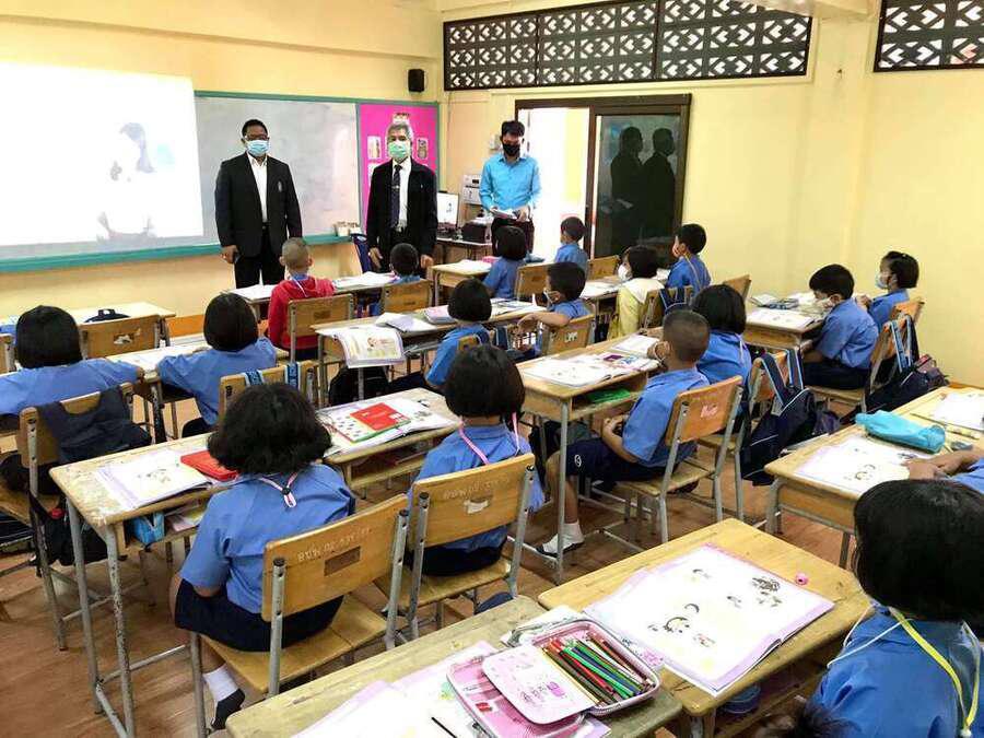 นายมนูญ จันทร์สุข ผู้อำนวยการเขตพื้นที่การศึกษาประถมศึกษาชุมพร เขต1 ได้มาติดตามการทดลองเปิดเรียนแบบ On-site ในสถานการณ์การแพร่ระบาดของโรคติดเชื้อไวรัสโคโรนา 2019 เต็มรูปแบบ