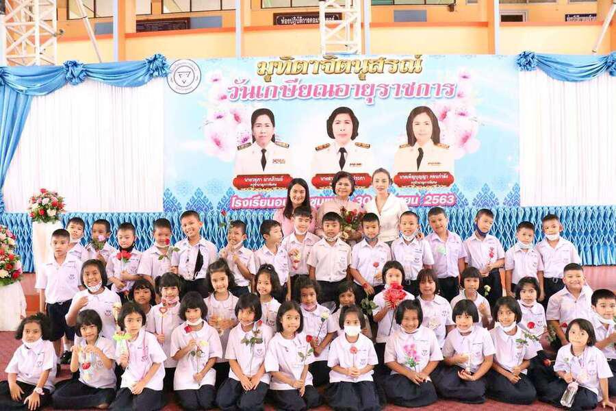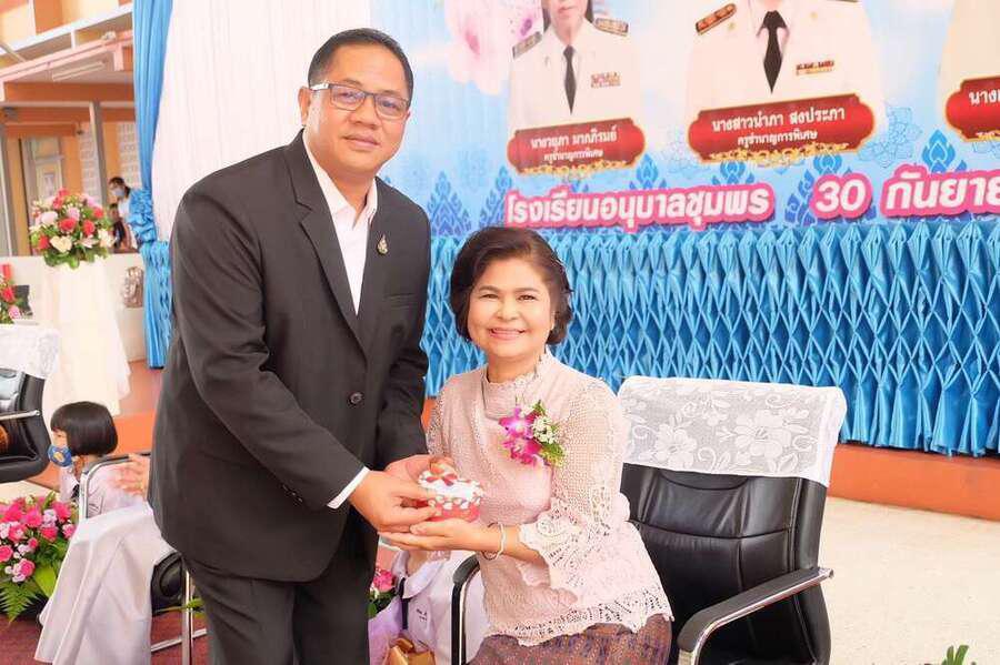 วันพุธที่ 30 กันยายน 2563 โรงเรียนอนุบาลชุมพร จัดงาน มุทิตาจิตจิตนุสรณ์ งานเกษียณอายุราชการครู นำโดย นายศักดิ์สิทธิ์ แร่ทอง ผู้อำนวยการโรงเรียนอนุบาลชุมพร เป็นประธานในพิธี ซึ่งในปีการศึกษา 2563 นี้ โรงเรียนอนุบาลชุมพร มีคุณครูที่เกษียณอายุราชการ จำนวน 3 ท่าน ได้แก่ 1) นางวยุภา มากภิรมย์ ครูชำนาญการพิเศษ 2) นางเพ็ญบุญญา คอนกำลัง ครูชำนาญการพิเศษ 3) นางสาวนำภา สงประภา ครูชำนาญการพิเศษ ทั้งนี้ ได้มีคณะกรรมการสถานศึกษาขั้นพื้นฐาน คณะครู นักเรียนและผู้ปกครอง เข้าร่วมในพิธีได้มอบช่อดอกไม้ ของขวัญ และอวยพรให้กำลังใจ พร้อมถ่ายภาพร่วมกัน ณ โดมใหญ่ โรงเรียนอนุบาลชุมพร S:0