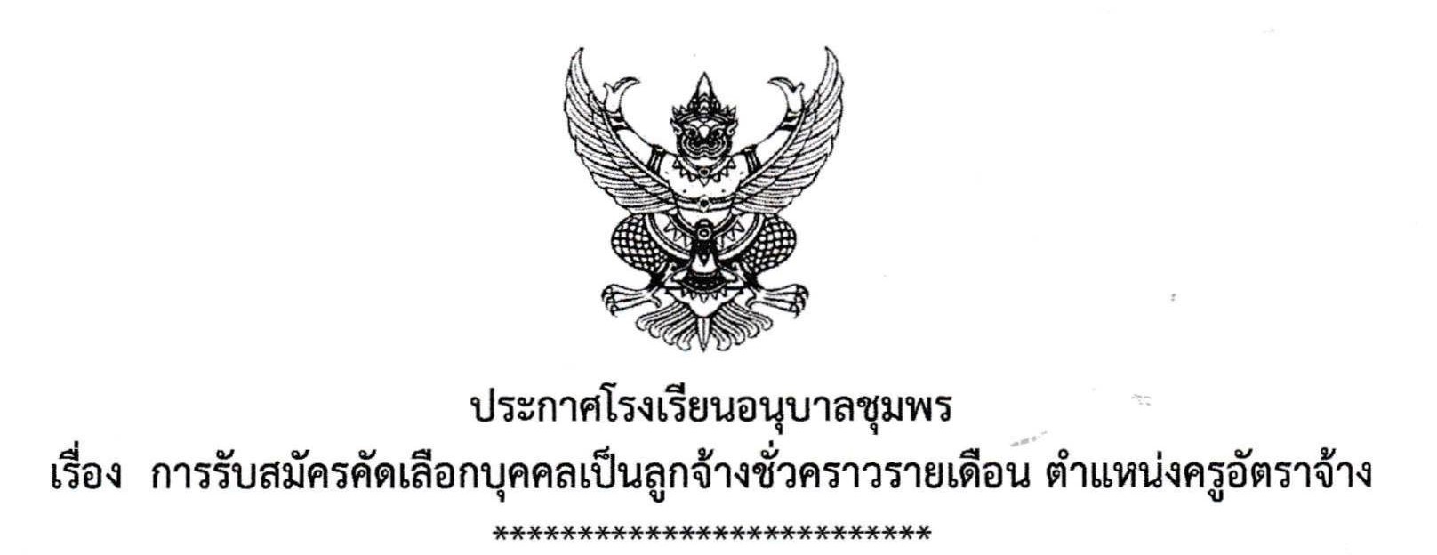 การรับสมัครคัดเลือกบุคคลเป็นครูอัตราจ้างชั่วคราวรายเดือน ตำแหน่งครูอัตราจ้าง