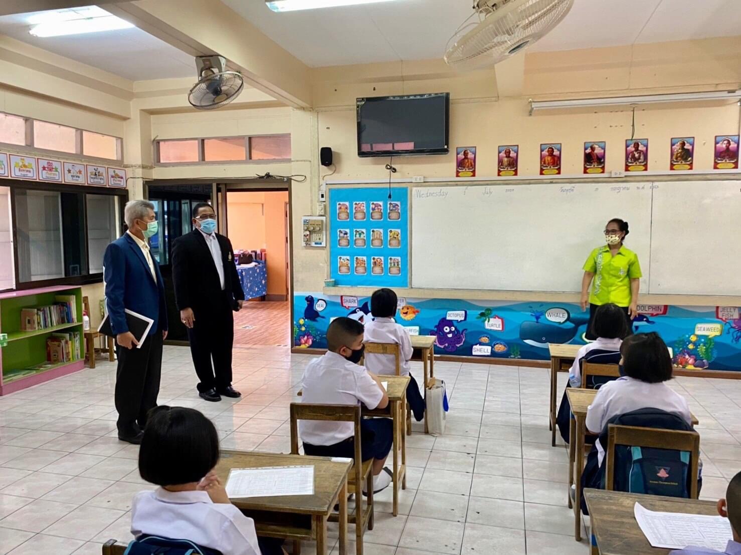 วันที่ 1 กรกฎาคม 2563 นายมนูญ จันทร์สุข ผู้อำนวยการสำนักงานเขตพื้นที่การศึกษาประถมศึกษาชุมพร เขต 1 ลงพื้นที่ตรวจเยี่ยมการเปิดภาคเรียนที่ 1 ปีการศึกษา 2563 (วันแรก) โดยมีนายศักดิ์สิทธิ์ แร่ทอง ผู้อำนวยการโรงเรียนอนุบาลชุมพรให้การต้อนรับ ซึ่งทางโรงเรียนได้ดำเนินการตามนโยบายแบบวิถีใหม่ “New Normal” พร้อมทั้งใช้มาตรฐาน Social distancing เพื่อความปลอดภัยให้แก่ ครู บุคลากร นักเรียน ผู้ปกครองทุกท่าน ซึ่งเน้นความปลอดภัย ปฏิบัติตามมาตรการด้านสาธารณสุขอย่างเคร่งครัด โดย มีจุดลงทะเบียนผ่าน Application ไทยชนะ วัดไข้นักเรียนทุกคน จัดตั้งจุดล้างมือด้วยเจลแอลกอฮอล์ ผู้บริหาร ครู บุคลากร และนักเรียนทุกคนต้องสวมหน้ากากอนามัย หรือหน้ากากผ้าตลอดเวลา เว้นระยะห่างในการทำกิจกรรม จัดห้องเรียนขนาด 15-25 คน พร้อมรักษาระเบียบวินัย เพื่อทำให้มั่นใจว่าโรงเรียนเป็นสถานที่ที่ปลอดภัยสำหรับนักเรียนทุกคน โรงเรียนอนุบาลชุมพรขอขอบคุณผู้เกี่ยวข้องทุกฝ่ายในความร่วมมือในการทำตามมาตรการที่กำหนด