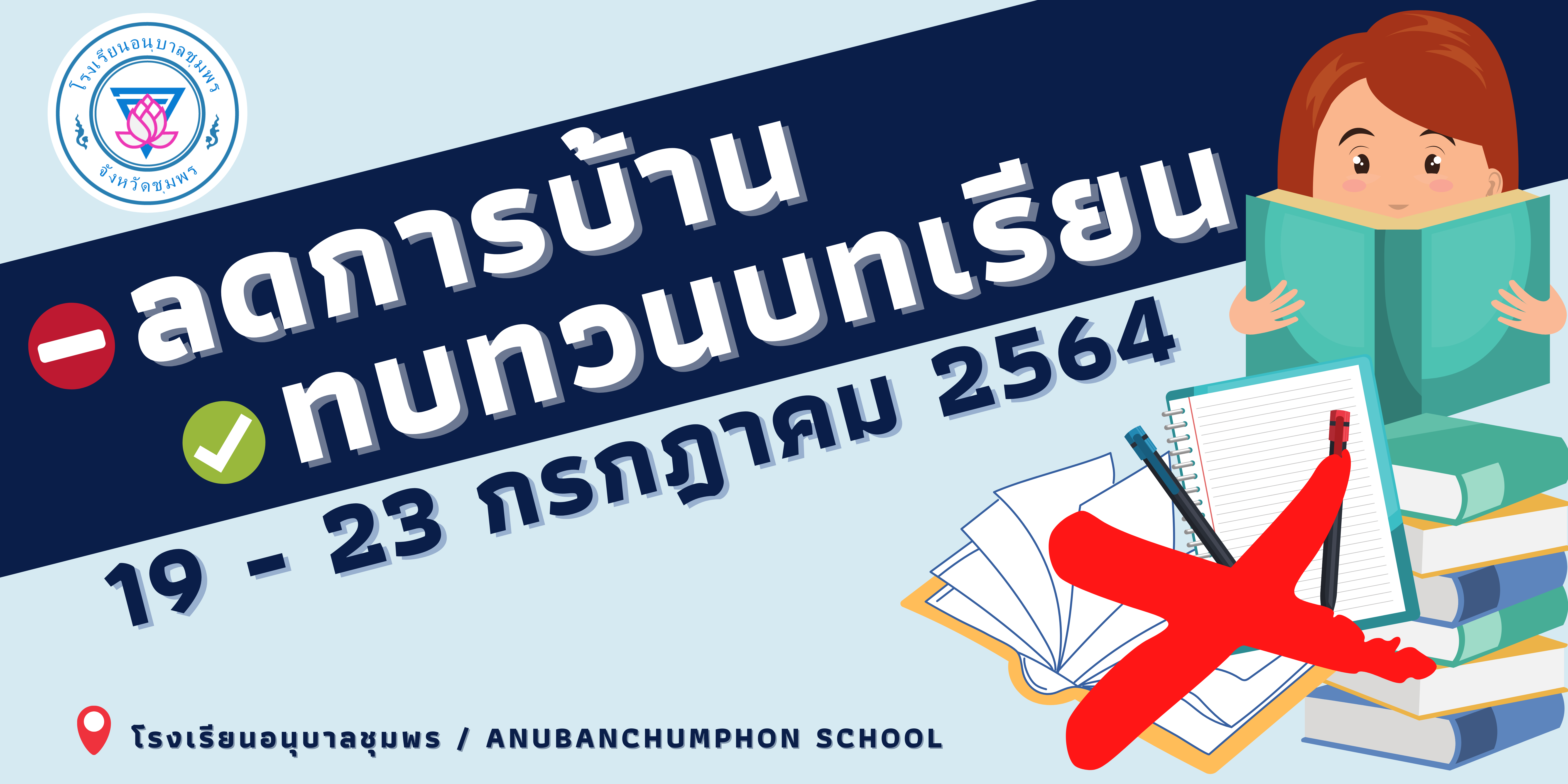 ประชาสัมพันธ์ เรื่อง ลดการบ้าน ทบทวนบทเรียน ระหว่างวันที่ 19-23 กรกฎาคม 2564